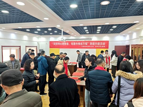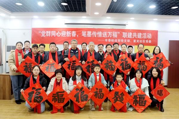 鲁网2月11日讯(记者 潘亚妮 实习记者 刘悦 通讯员 秋实 雅丽 志国)2月11日上午,为迎接新春佳节,平度市凤台街道星光社区联合平度市委统战部开展“党群同心迎新春,笔墨传情送万福”联建共建活动。活动现场党员志愿者与书法爱好者一同铺纸研墨,挥毫书写春联和“福”字。一副副寓意吉祥的春联、一个个饱满的“福”字被赠予到场居民,现场洋溢着欢乐祥和的迎新春气氛。